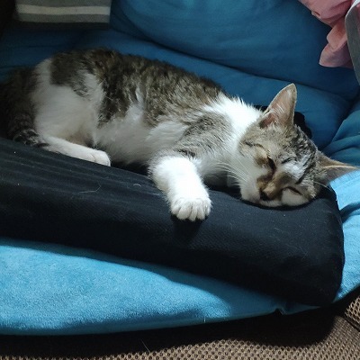 まだ生後6ヶ月の子猫だからよく食べ、よく寝るね。